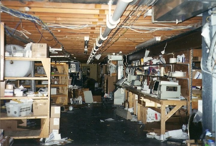 I climbed onto the main floor and began rummaging for the few personal items kept at my desk, and the four dozen or so books I consulted most. Interestingly, I found that because my desk was located in the southwest corner of our room, the two adjoining walls had pancaked onto my area, and served as a protective base of one of the two piles of distinct debris. The result was that I lost nothing from my area, and my computer hard drive and monitor were undamaged.